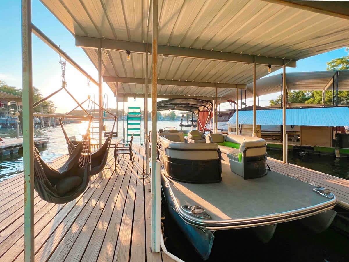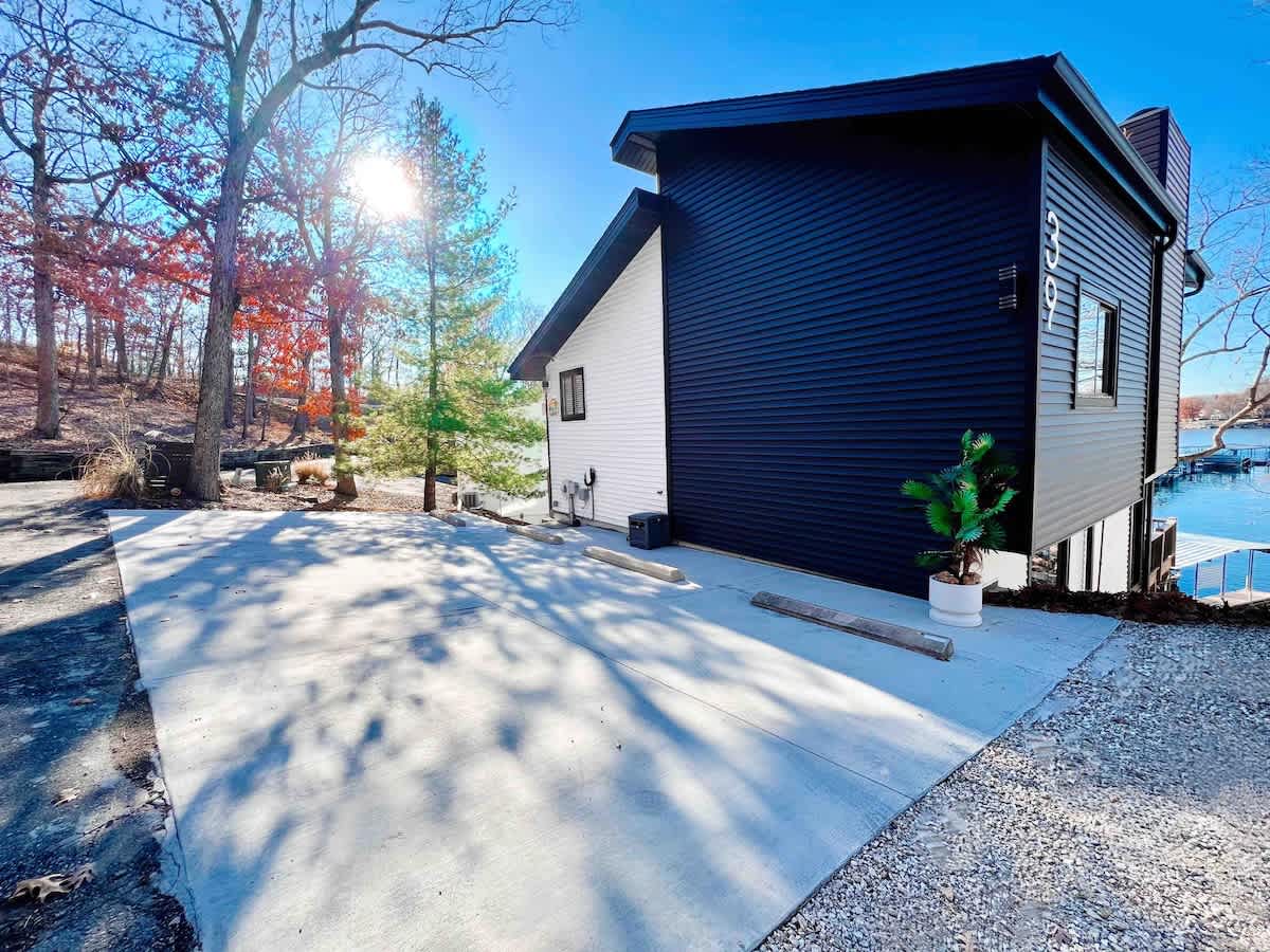 Brand New Interior w/PRIVATE DOCK, EV Tesla Charger, high dive, lily pad & 10x24 Boat Slip. FUN, UNIQUE design with a Tropical vibe, w/plenty of Paved Parking and in the best location- centrally located near the Bagnell Dam Strip in Lake of the Ozarks!